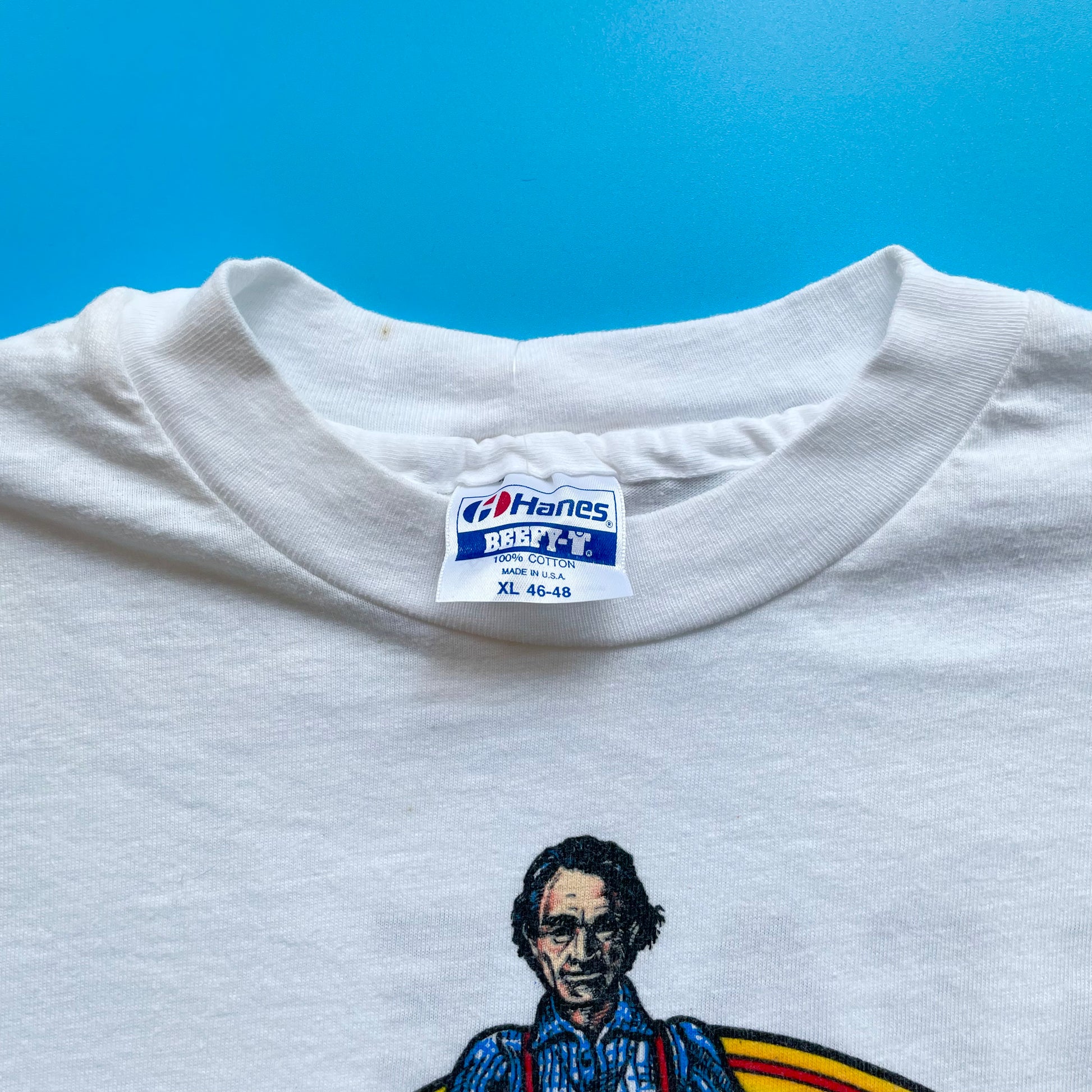 Made in the USA. Single stitch. Deadstock tee sourced from a very reliable one ;) This tee was taken out of the original box right before my eyes. It’s never been washed or worn and has been stored away for the past 36 years!