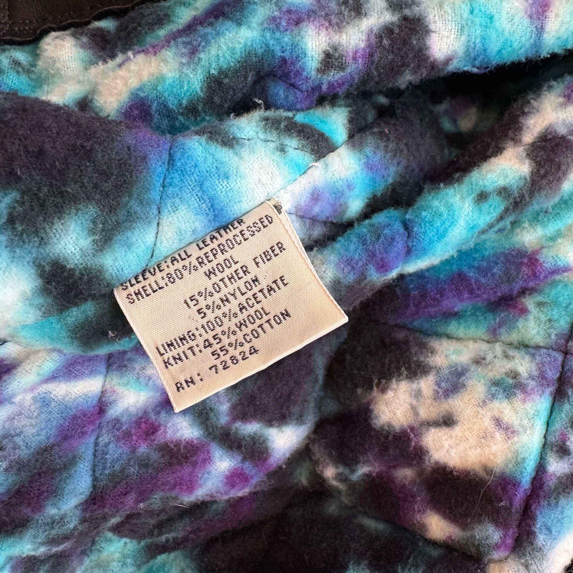 Material: Sleeves: 100% leather; Shell: 80% repurposed wool, 15% other fiber, 5% nylon; Lining: 100% acetate, knit: 45% wool, 55% cotton
