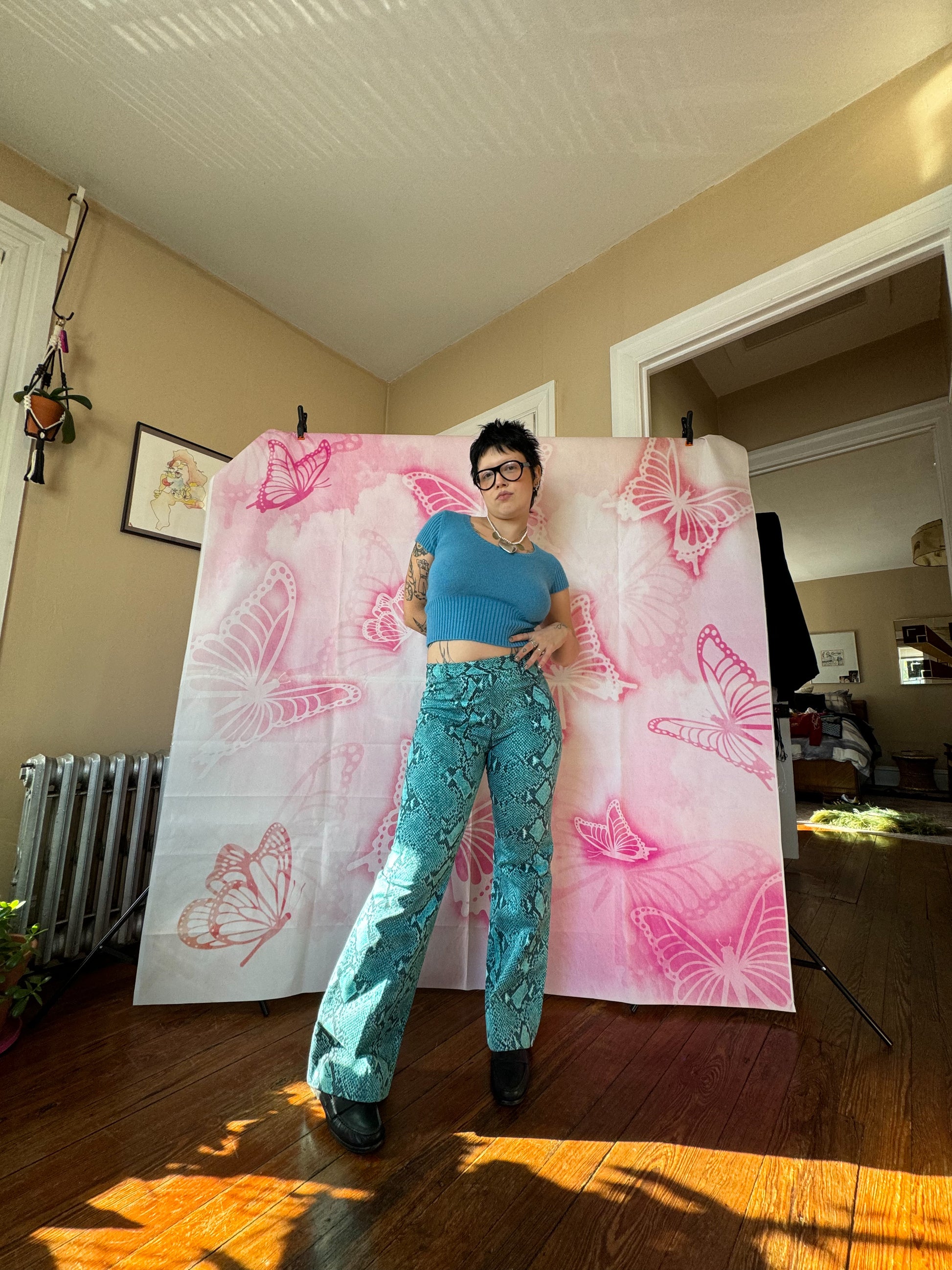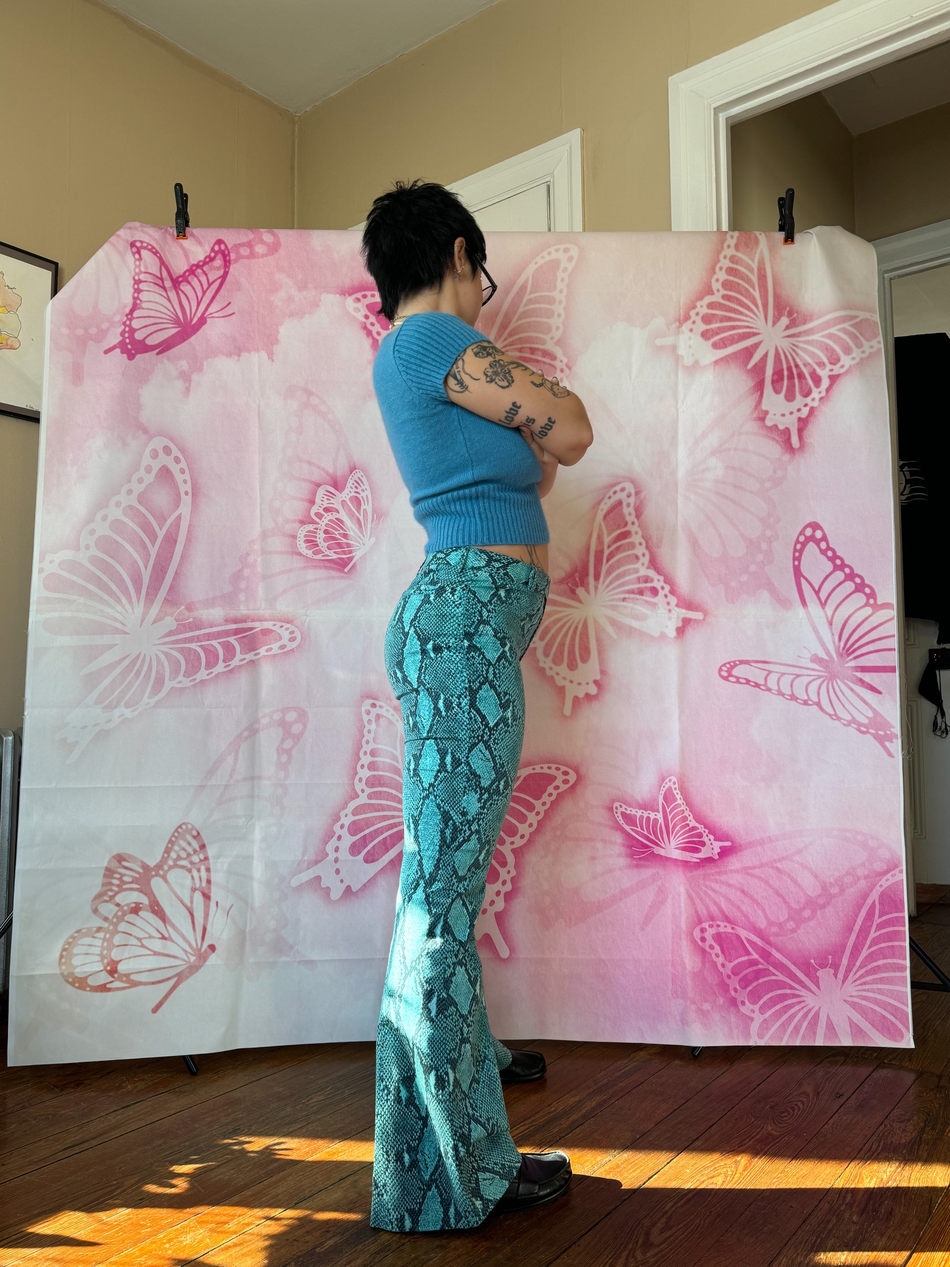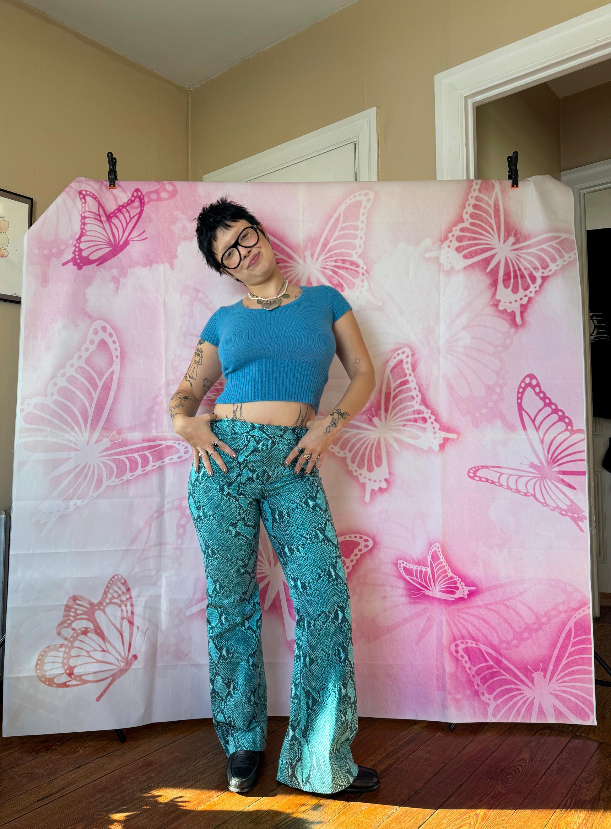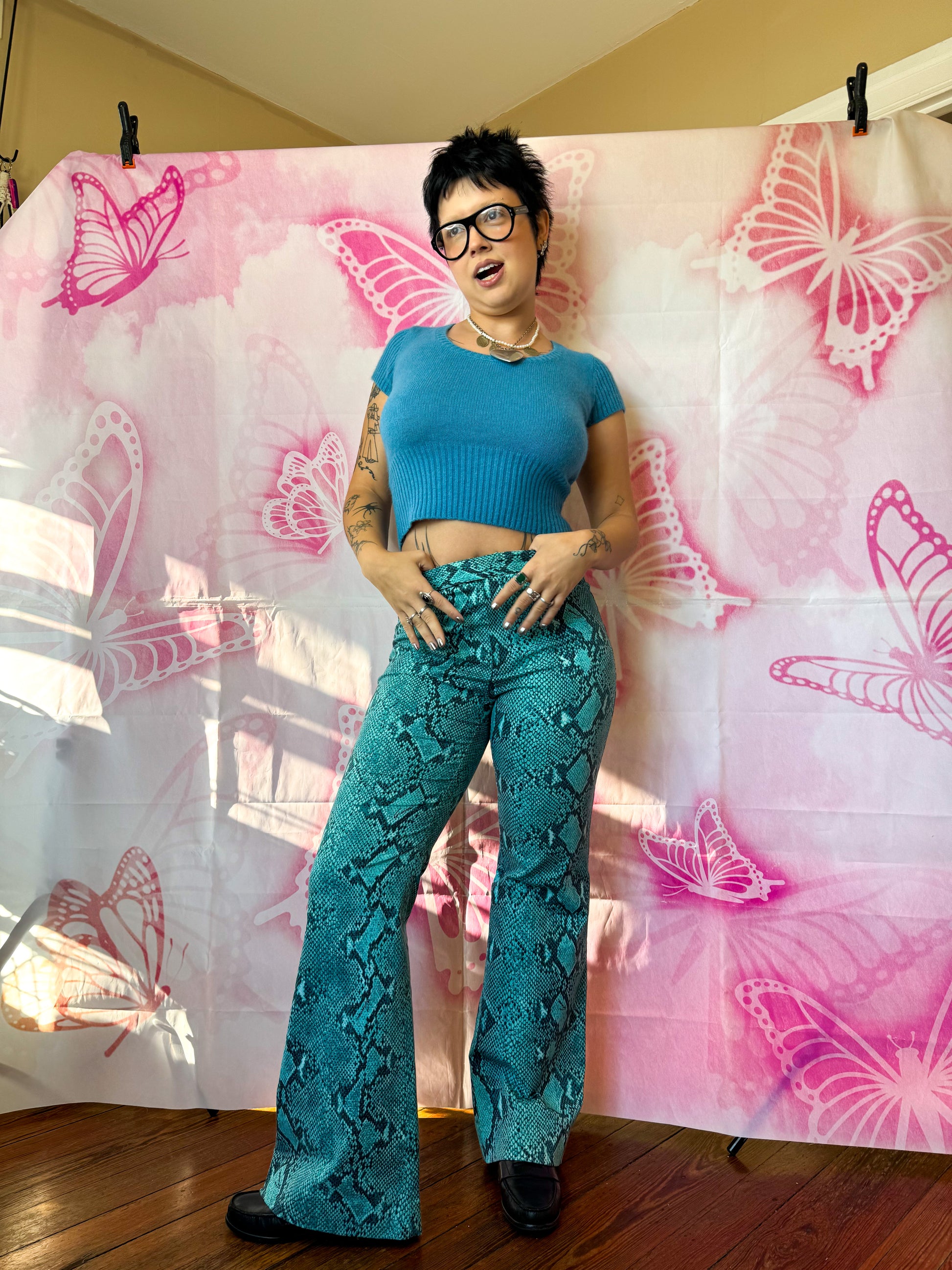 Measurements: 31" waist, 36" hips, 10" Rise, 30" inseam, 11" leg opening