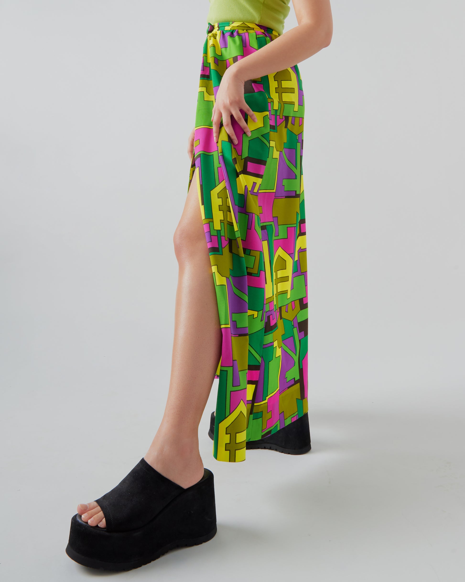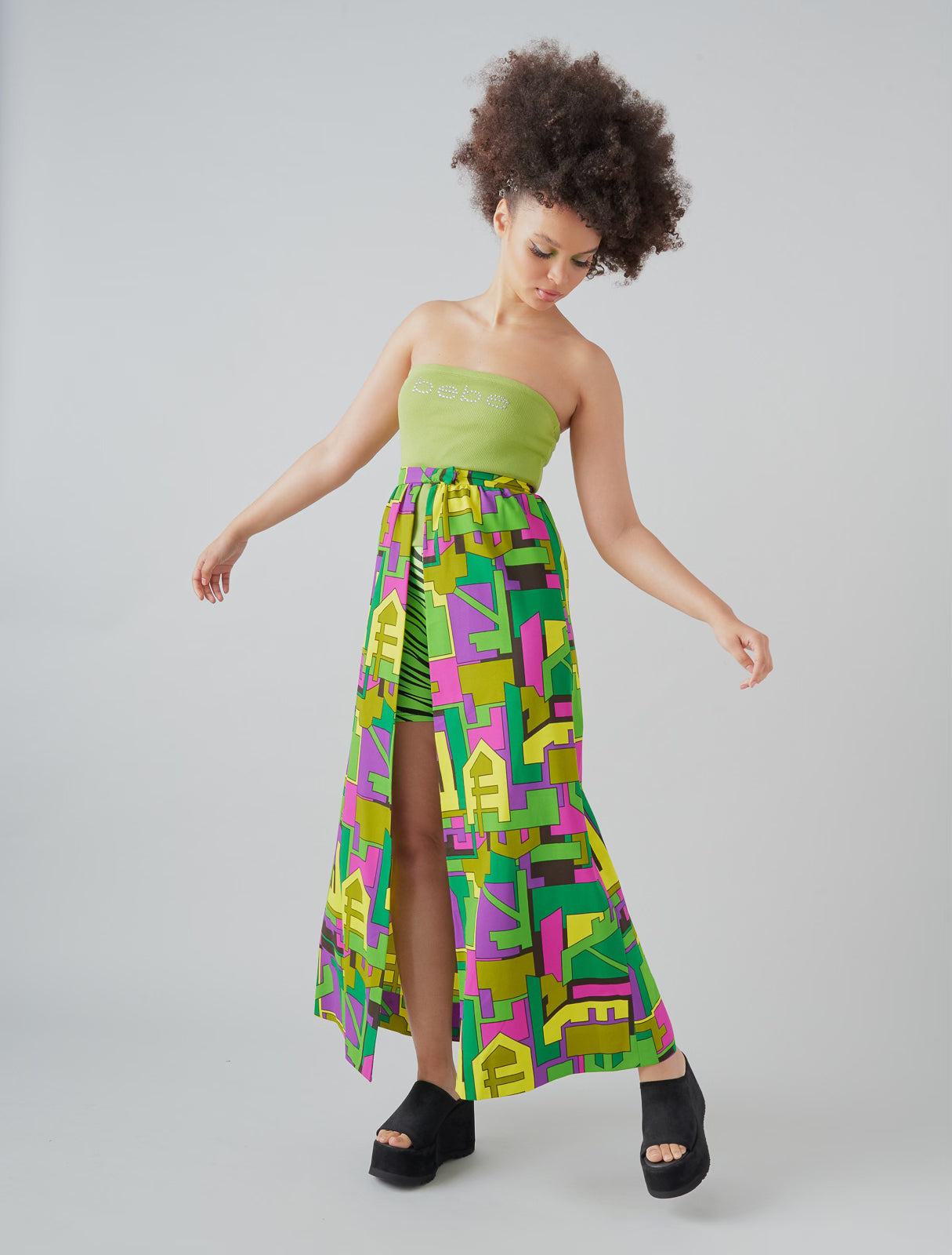 70s Geometric Print Convertible Open Front Maxi Skirt