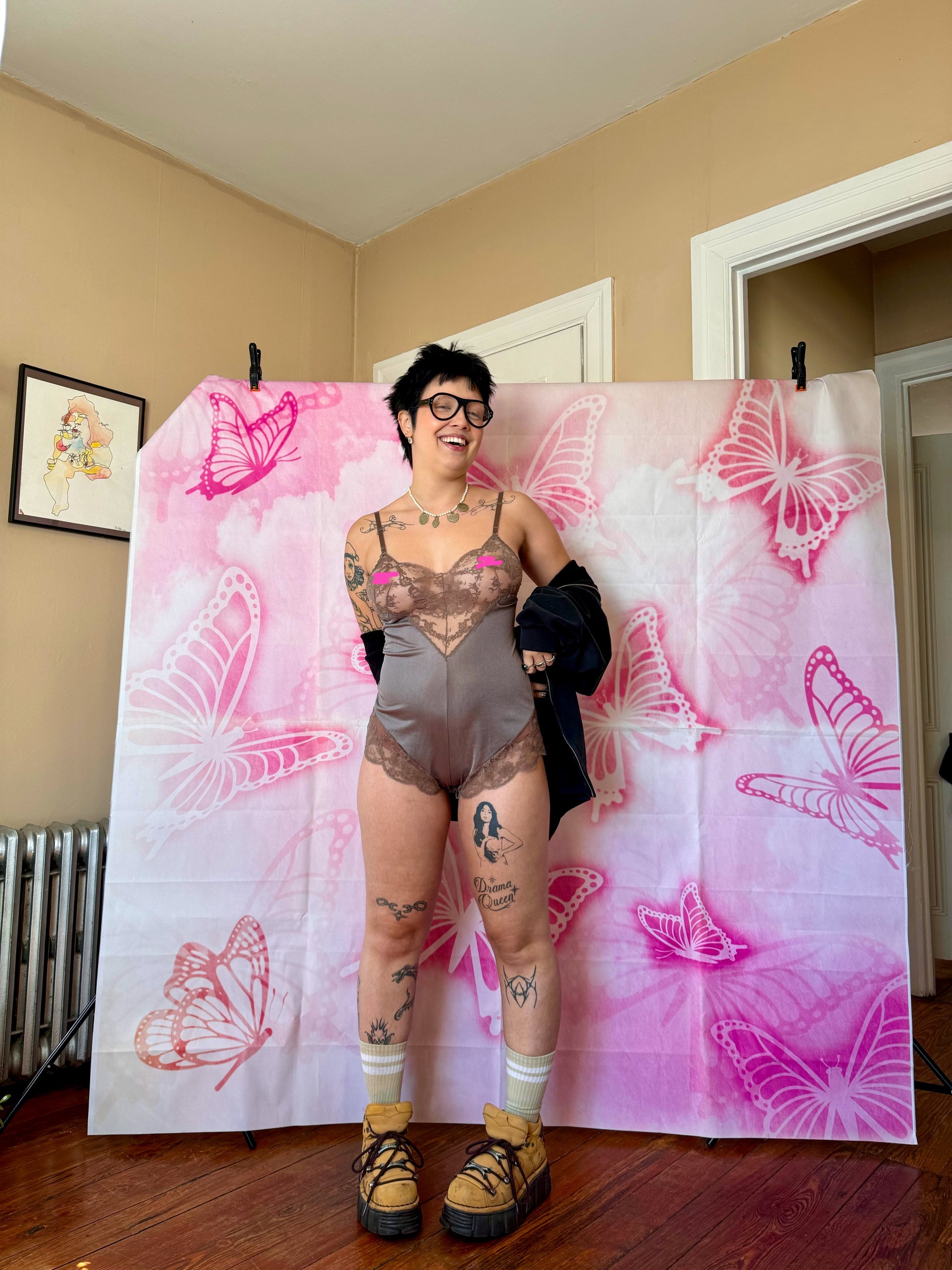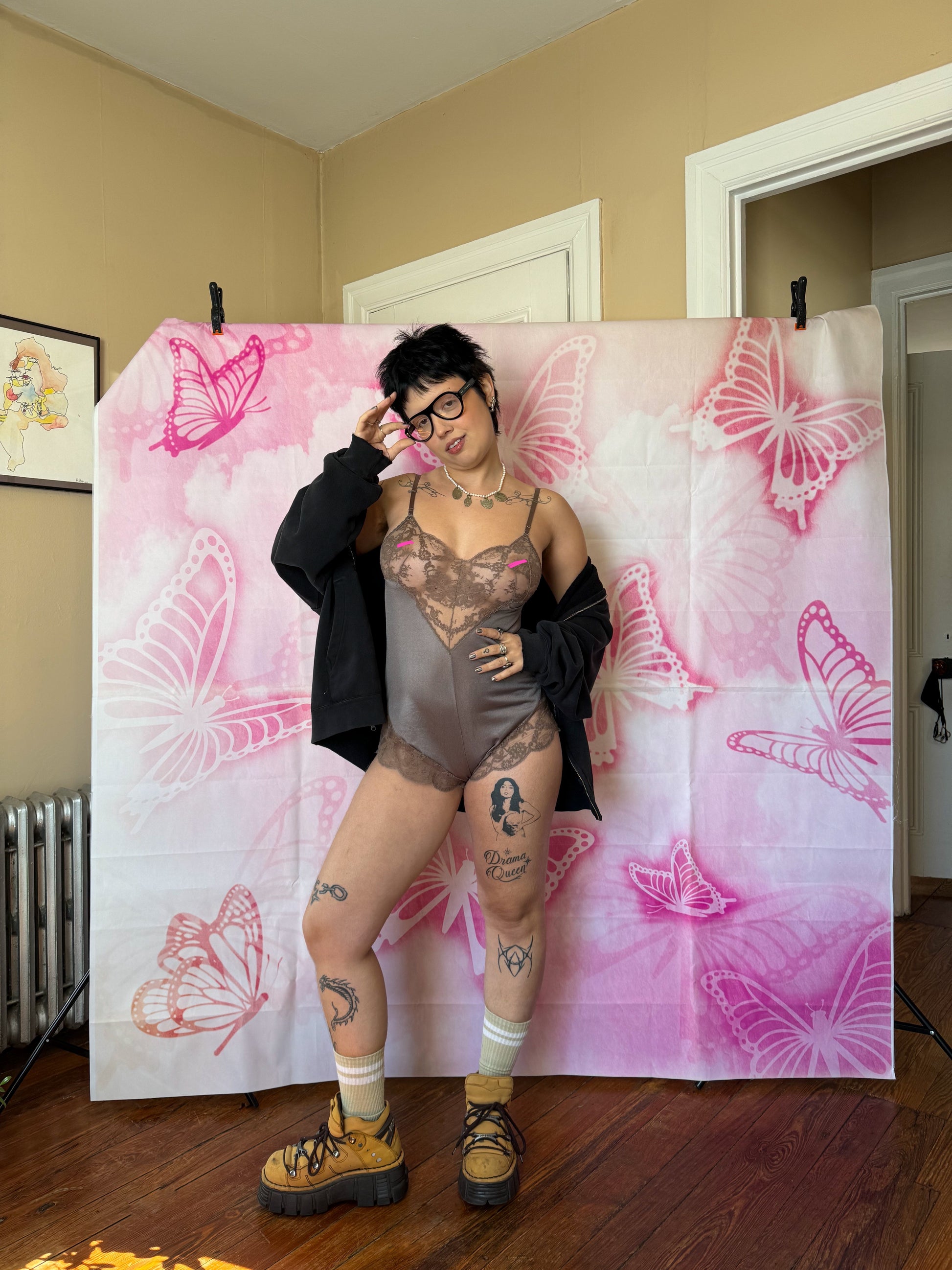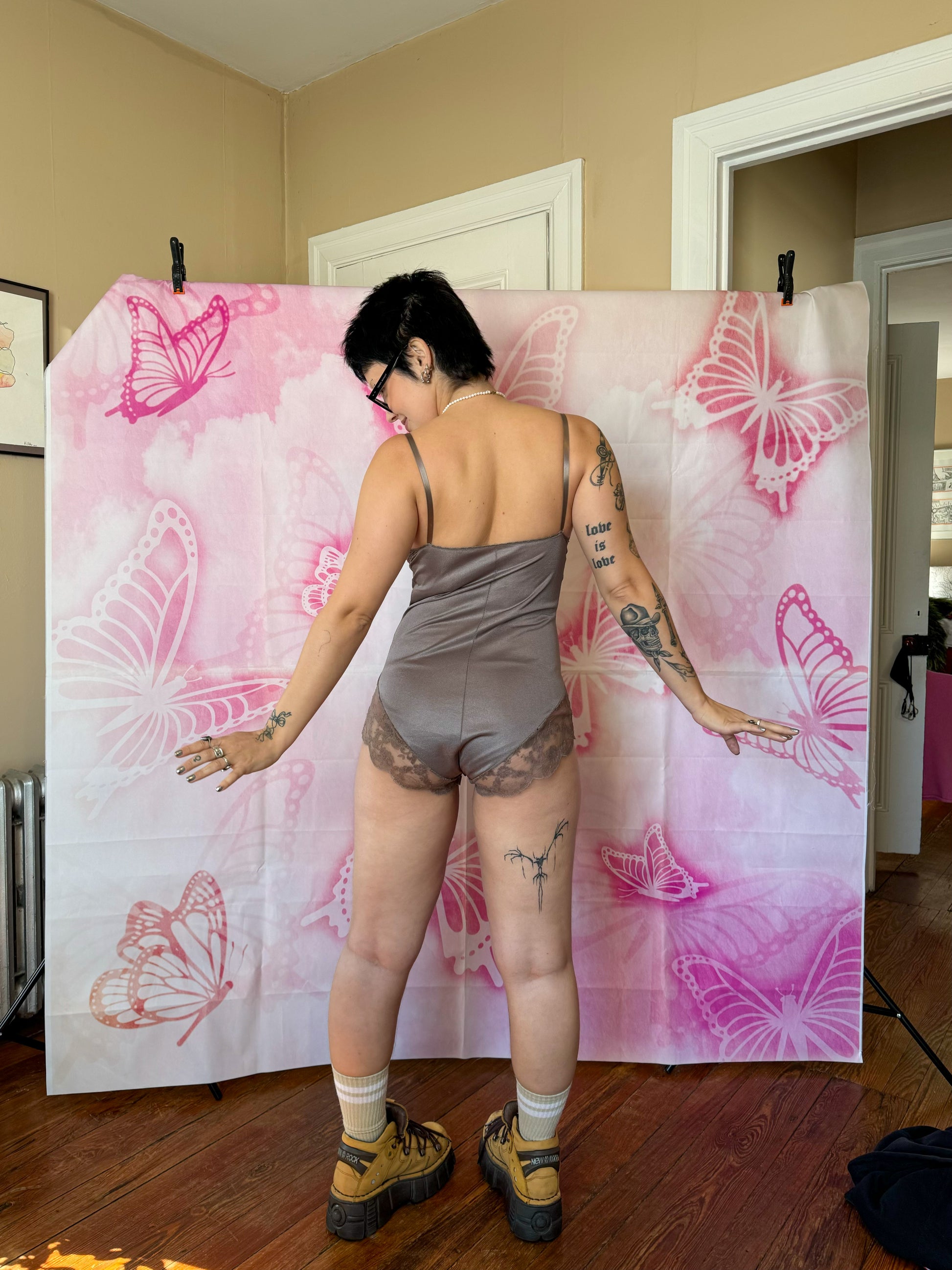 Measurements: 32” bust, 28”-29” stretch waist, 9.5” long