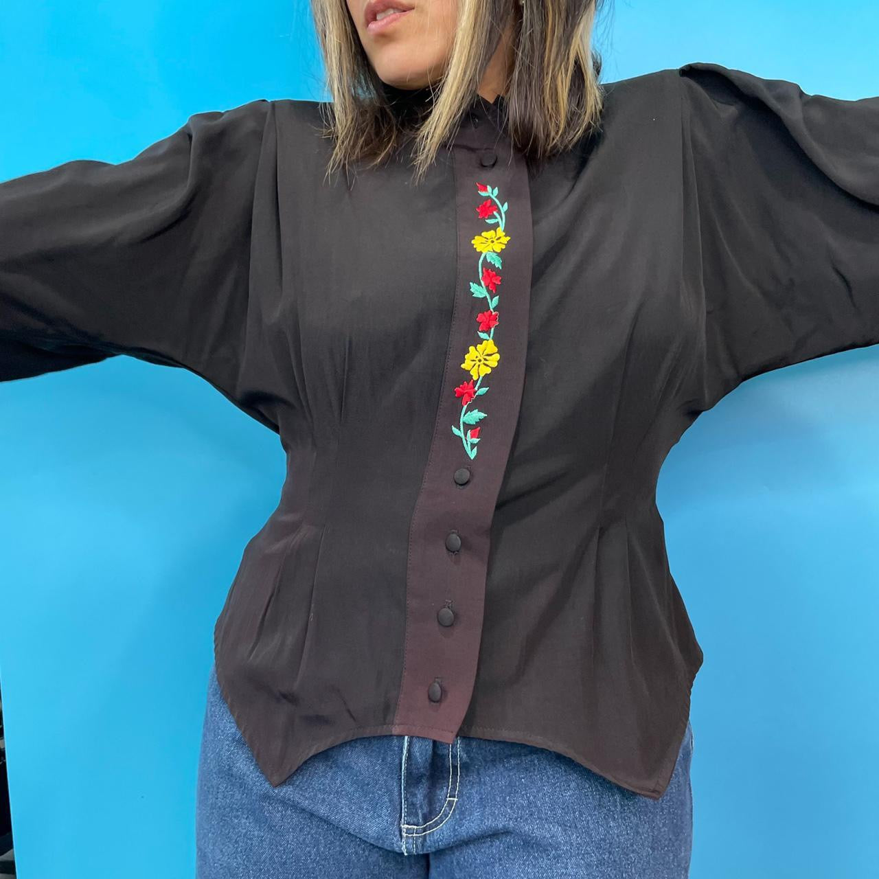 90s Deadstock Blouse with Embroidered Placket