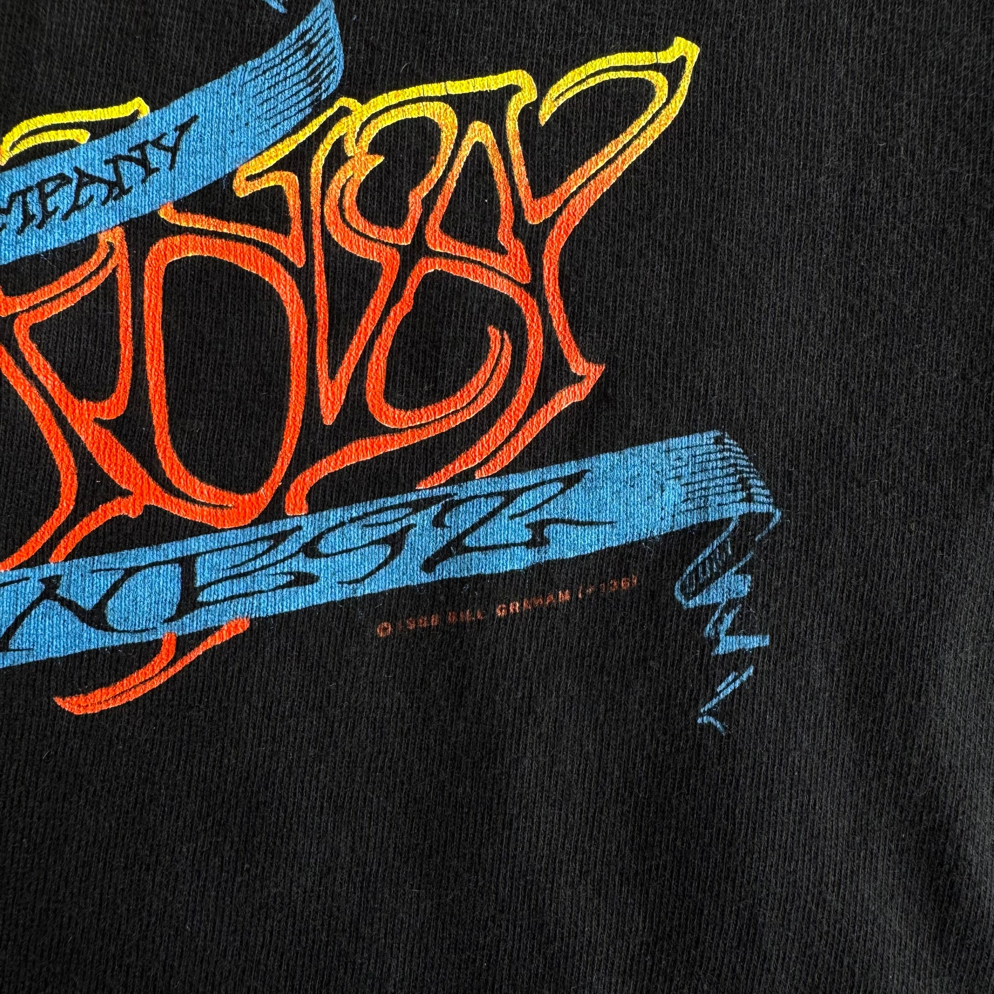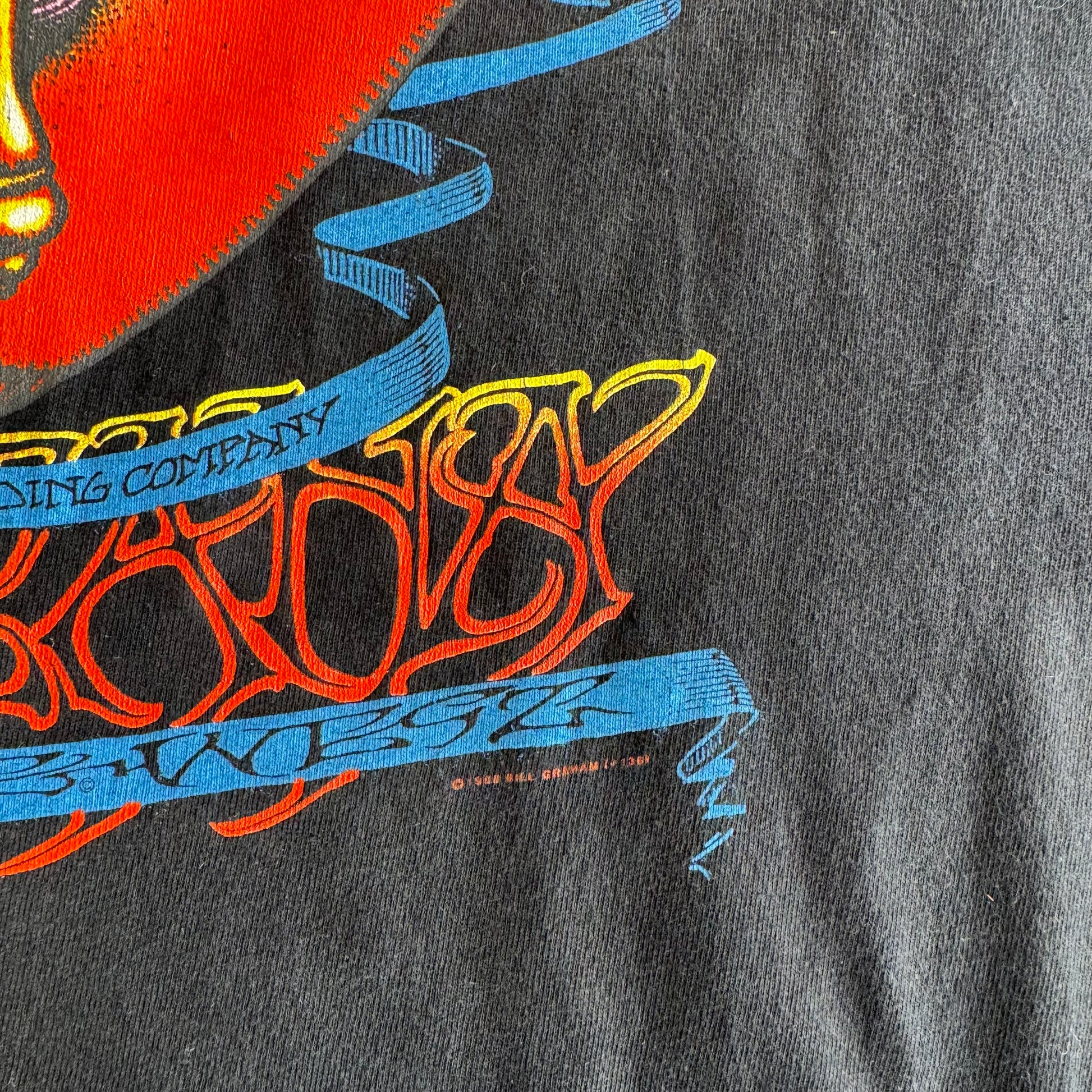 Made in the USA. Single stitch. This tee was sourced directly from from Bill Graham's son. This tee was taken out of the original merch box right before my eyes and has been stored away for almost 30 years! This T Shirt is in excellent condition; no holes, no stains.