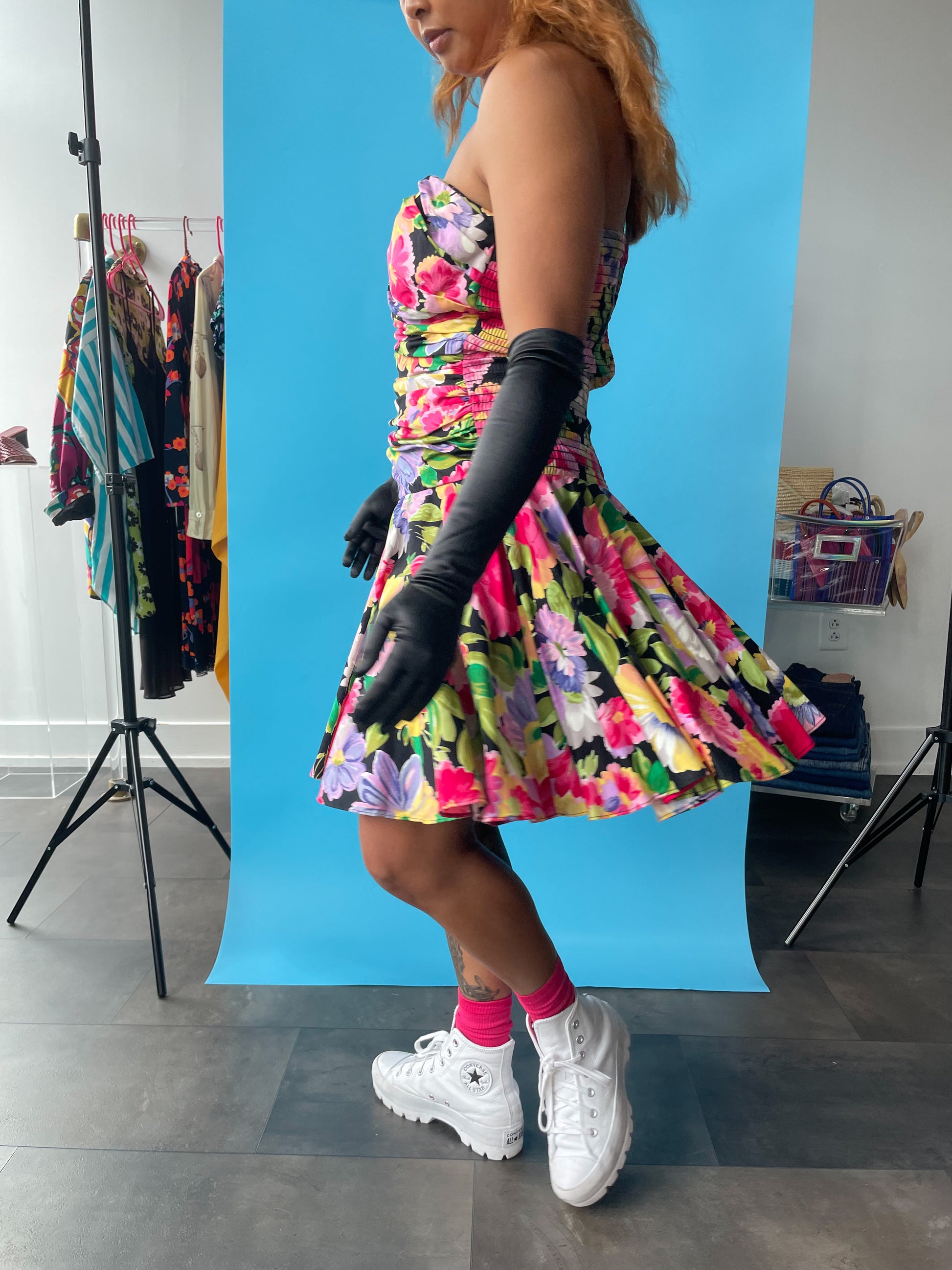 Measurements: 32" bust with lots of stretch, 30" waist, 28" long