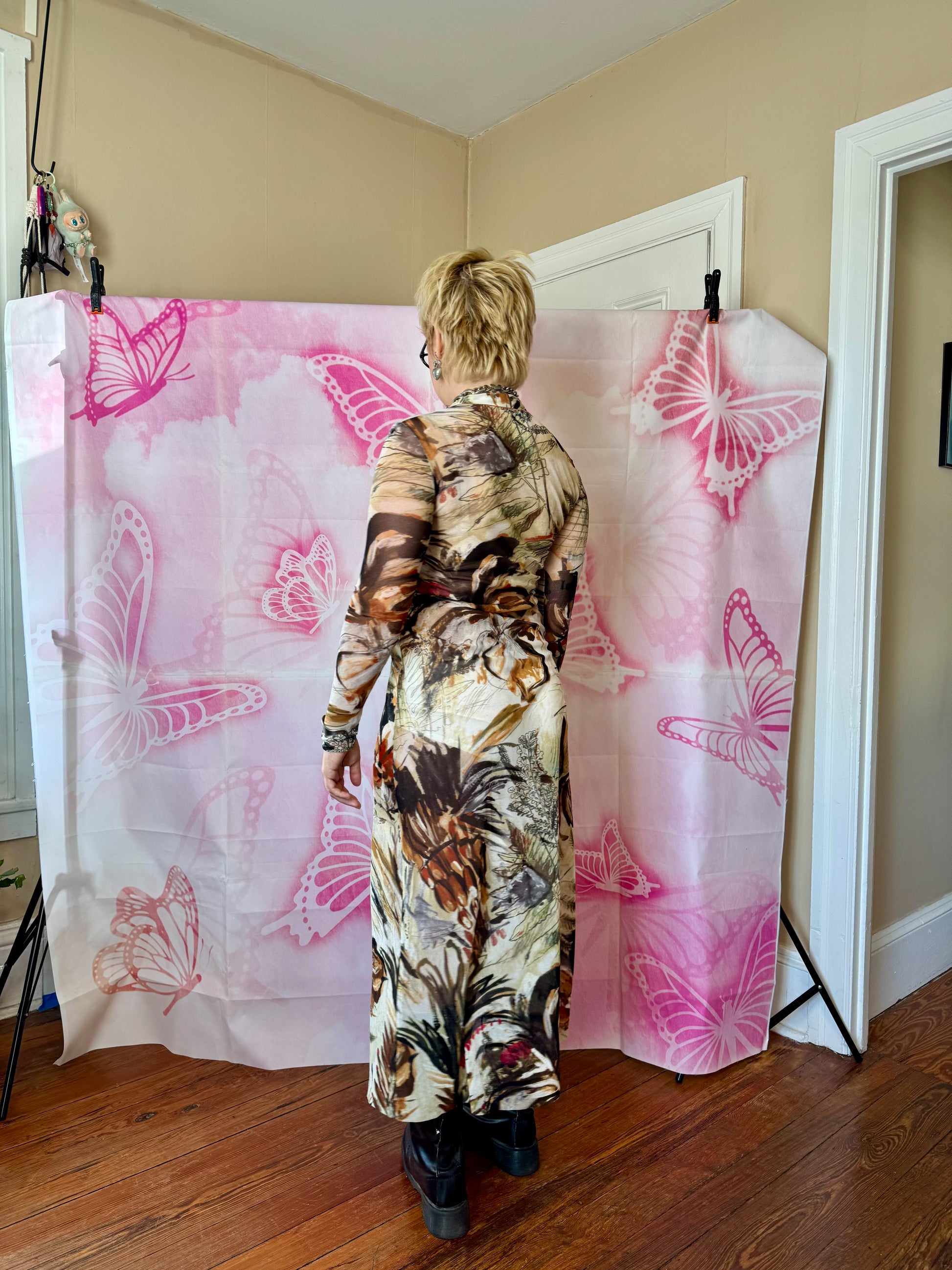 90s/Y2K Fuzzi Foliage Print Mesh Midi Dress/ Duster