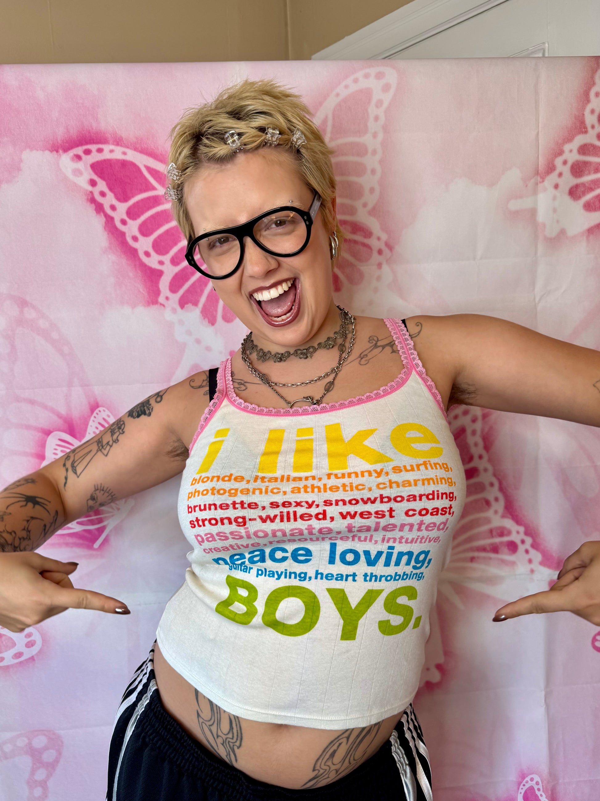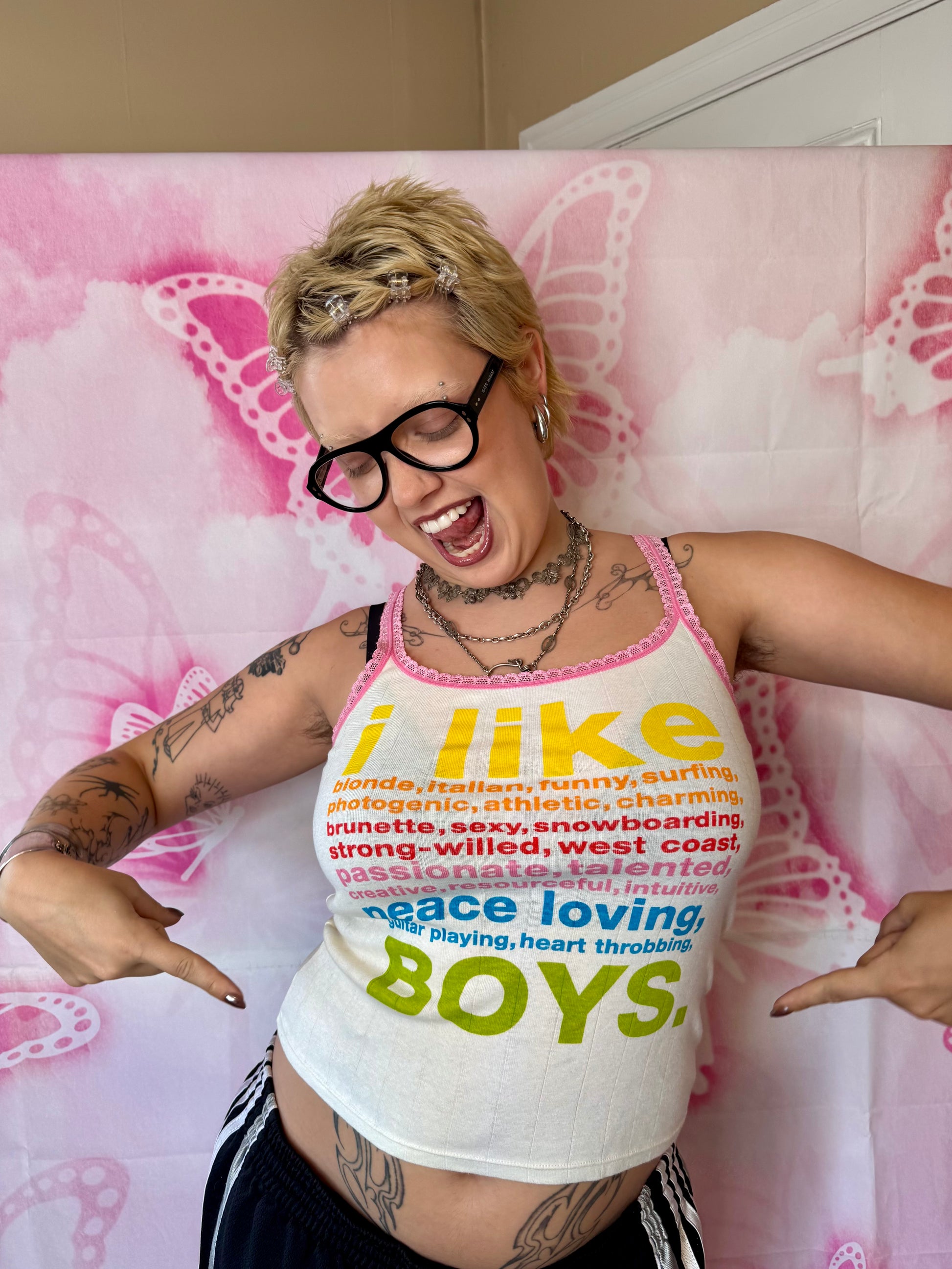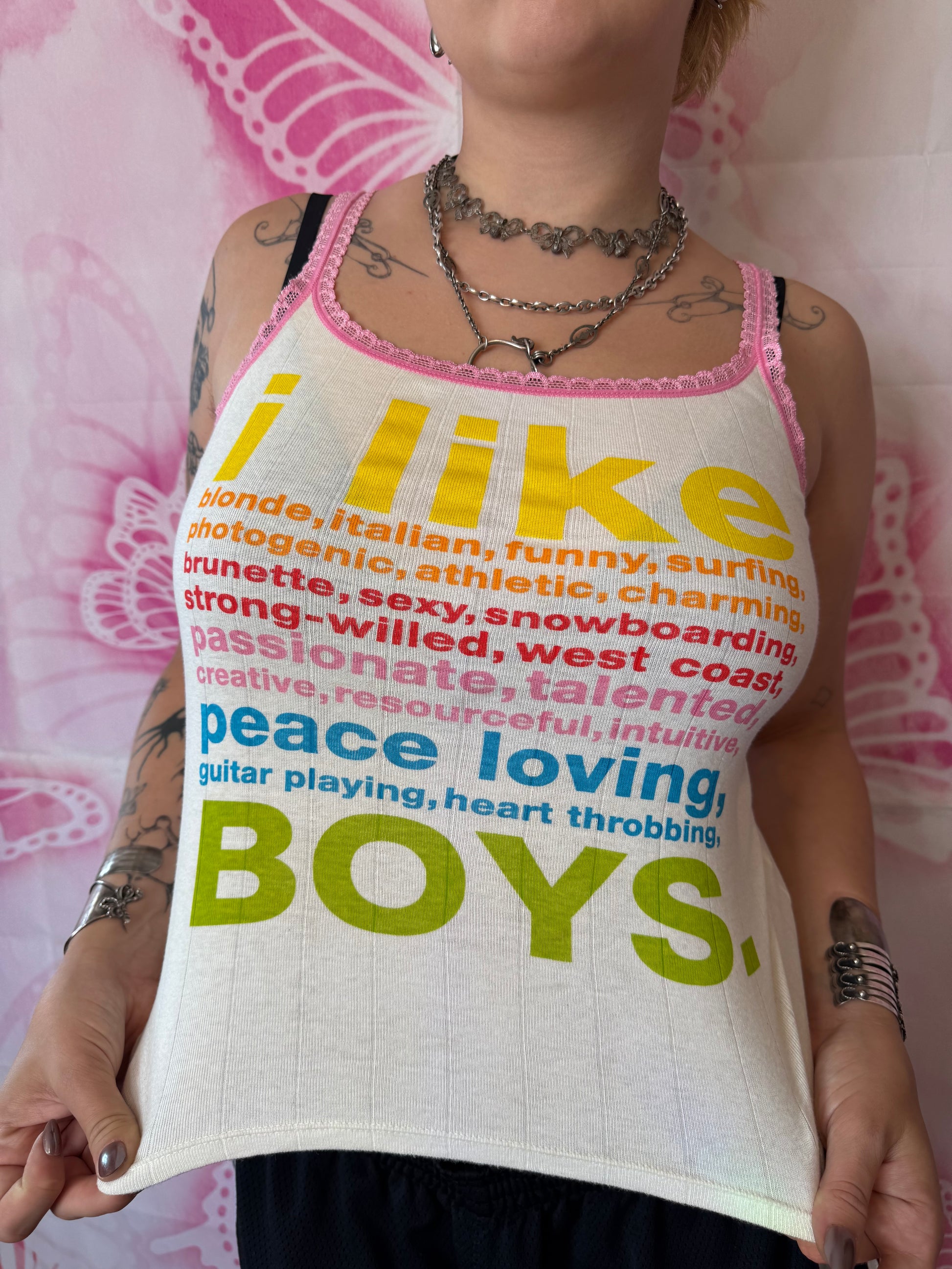 2004 RARE Victoria’s Secret Pink Rainbow Text “i like…” Graphic Tank