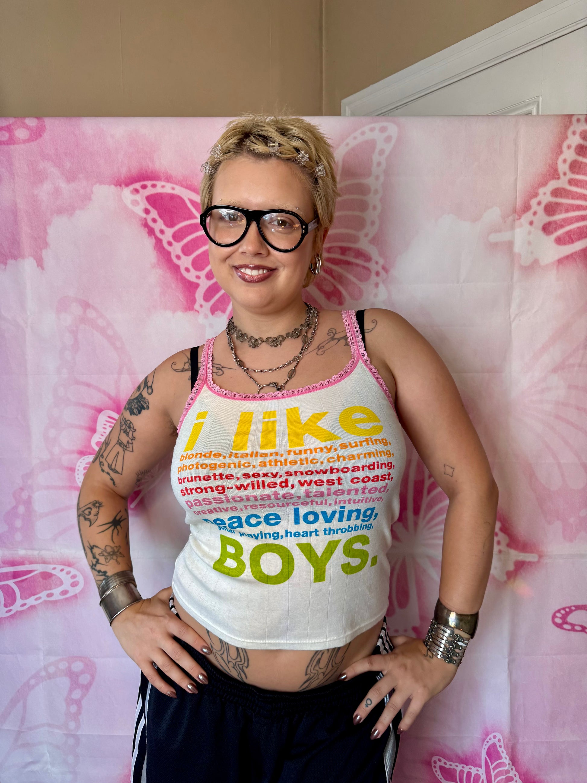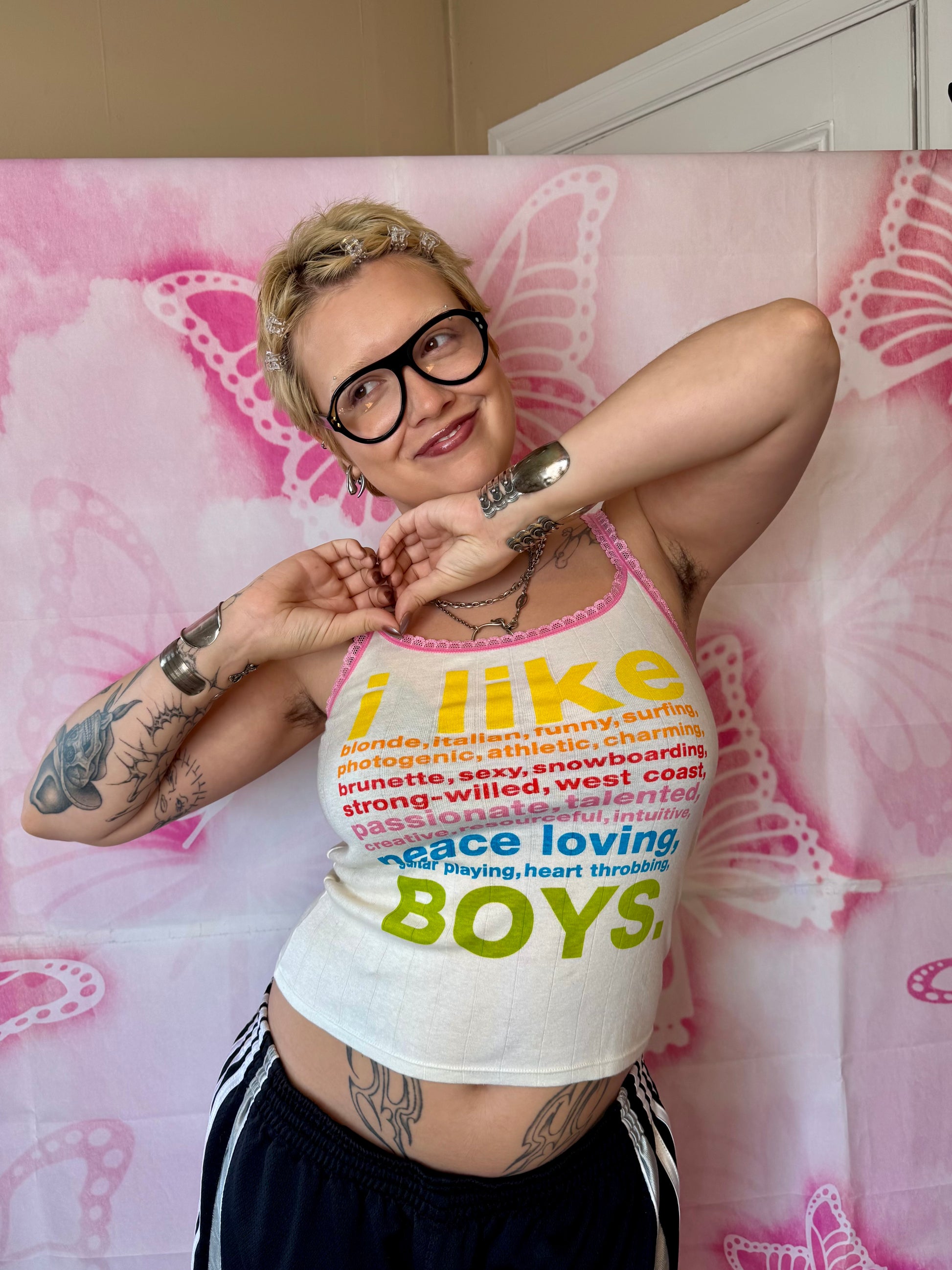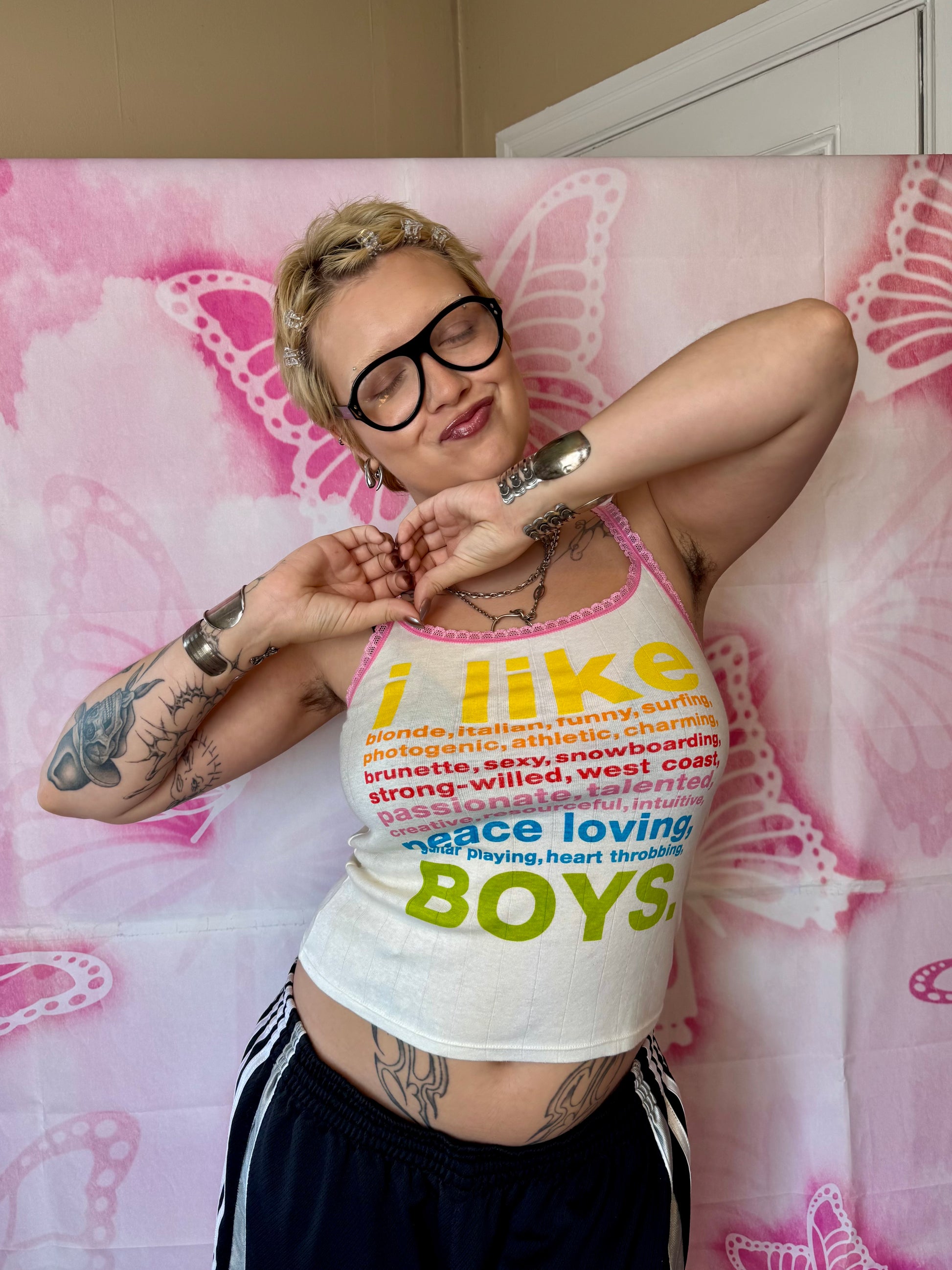 2004 RARE Victoria’s Secret Pink Rainbow Text “i like…” Graphic Tank