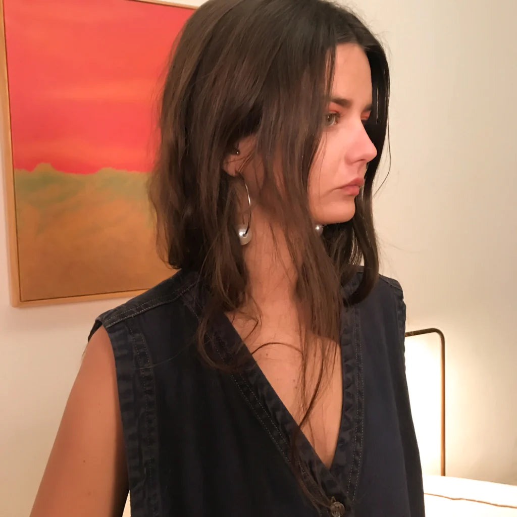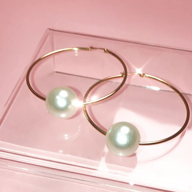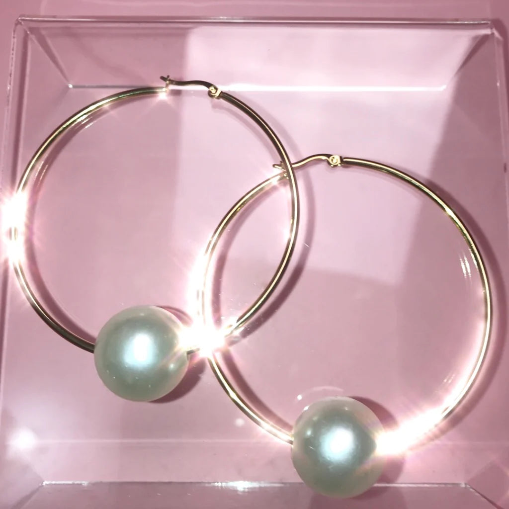 2.5" steel hoops w/ .75" faux pearl. Made by Shop Journal Studio in Pittsburgh, PA.