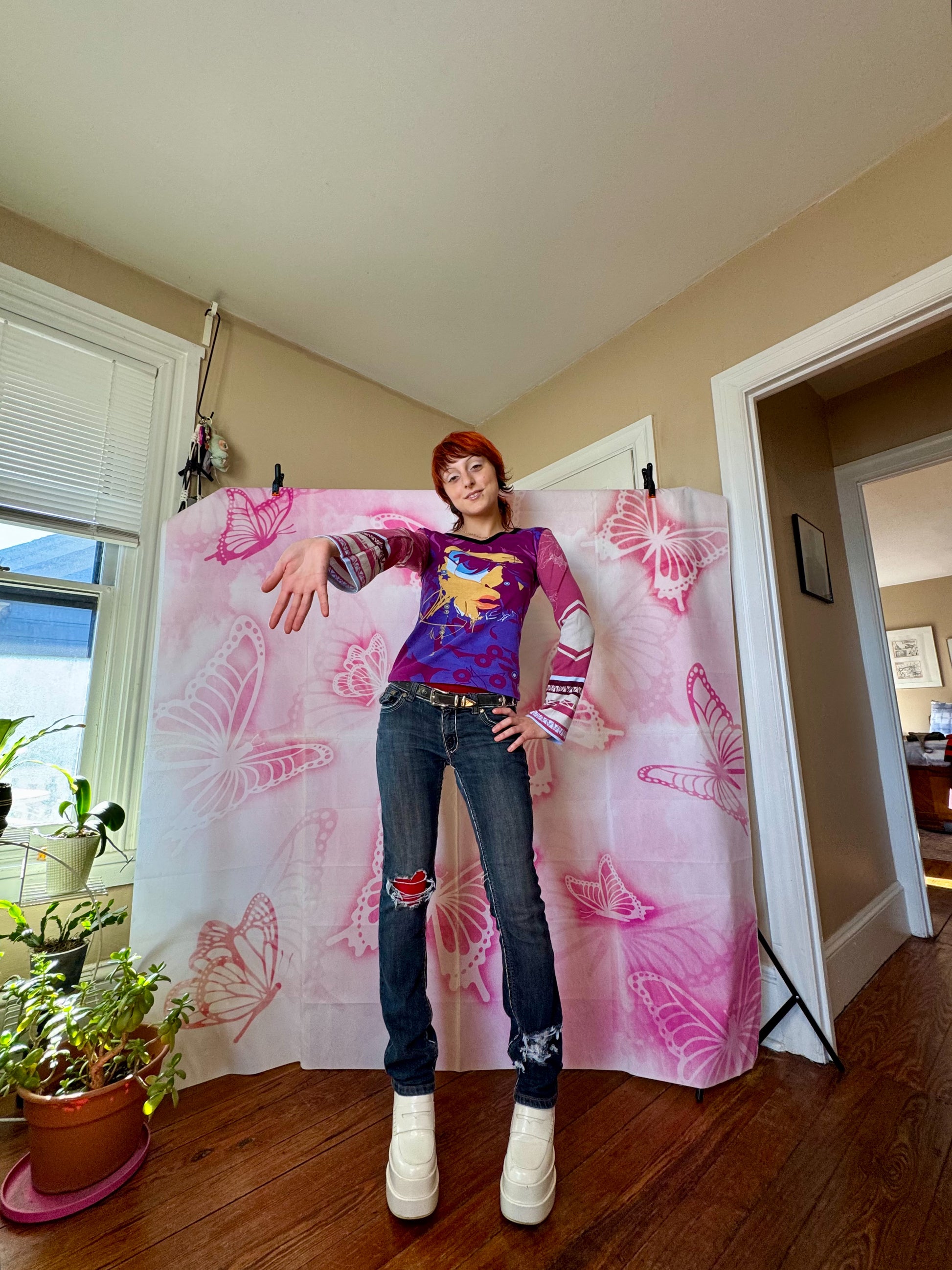 Measurements: 18" shoulder to shoulder, 38" bust, 21" shoulder to hem, 17" v neckline to hem