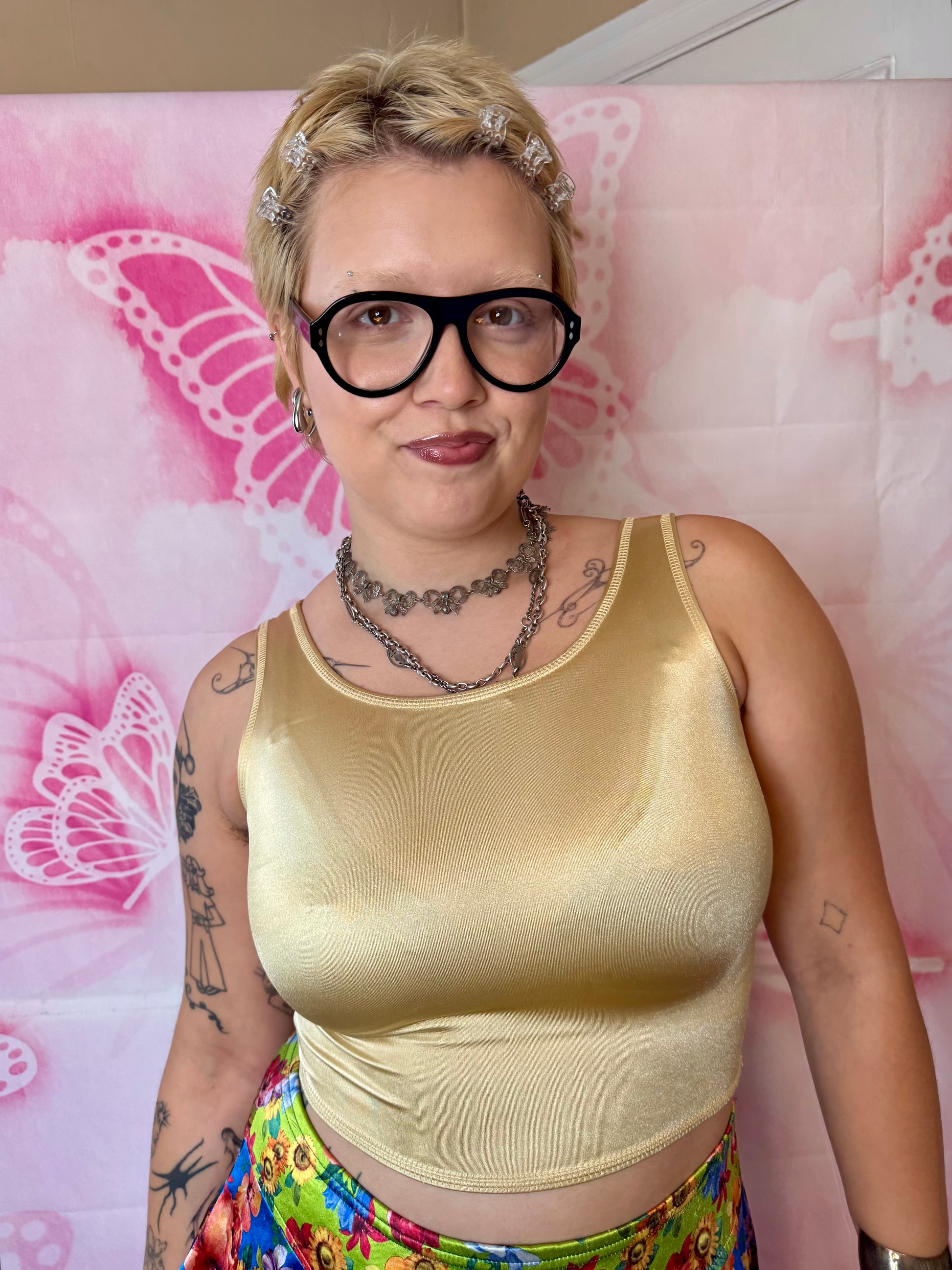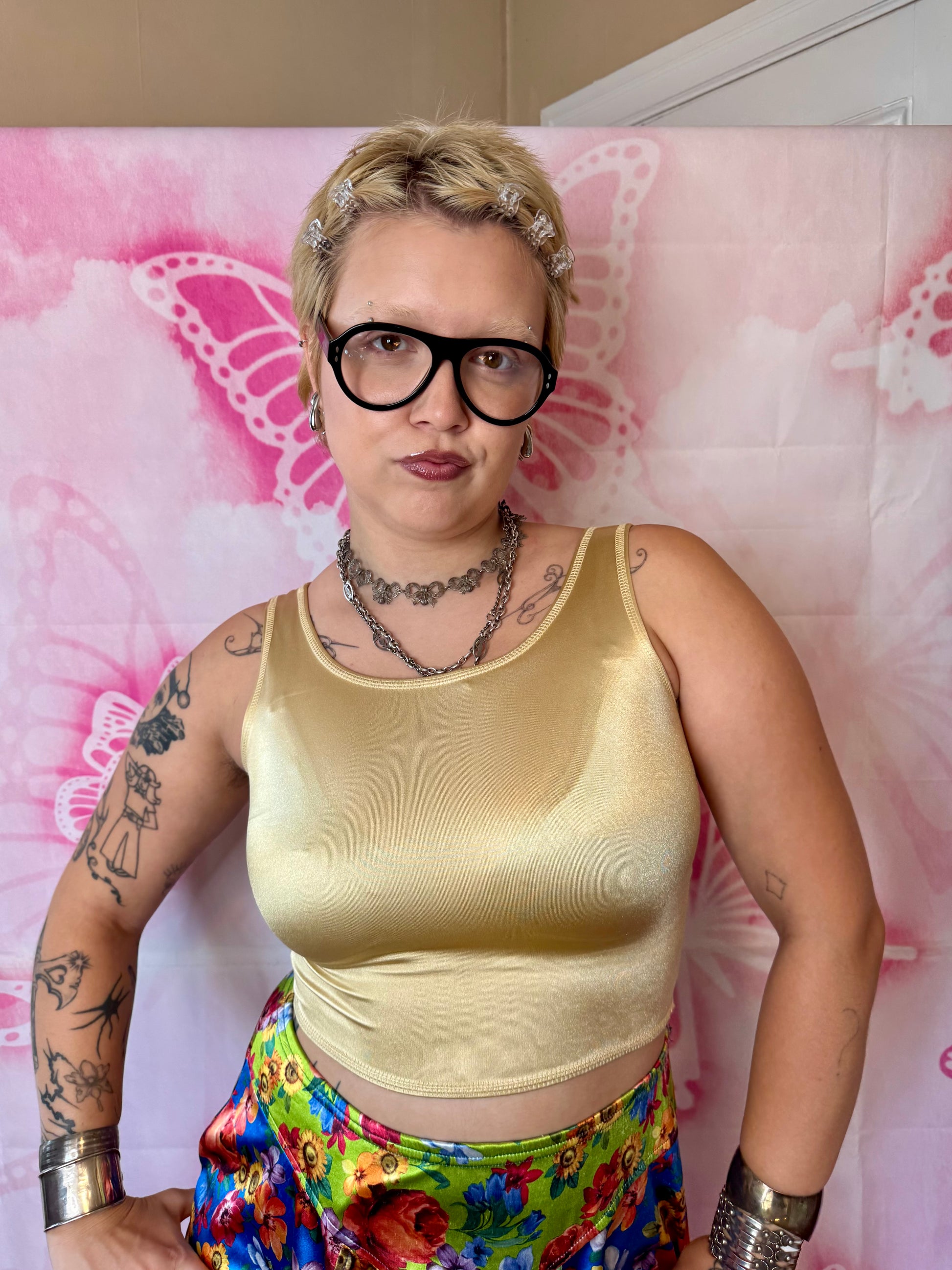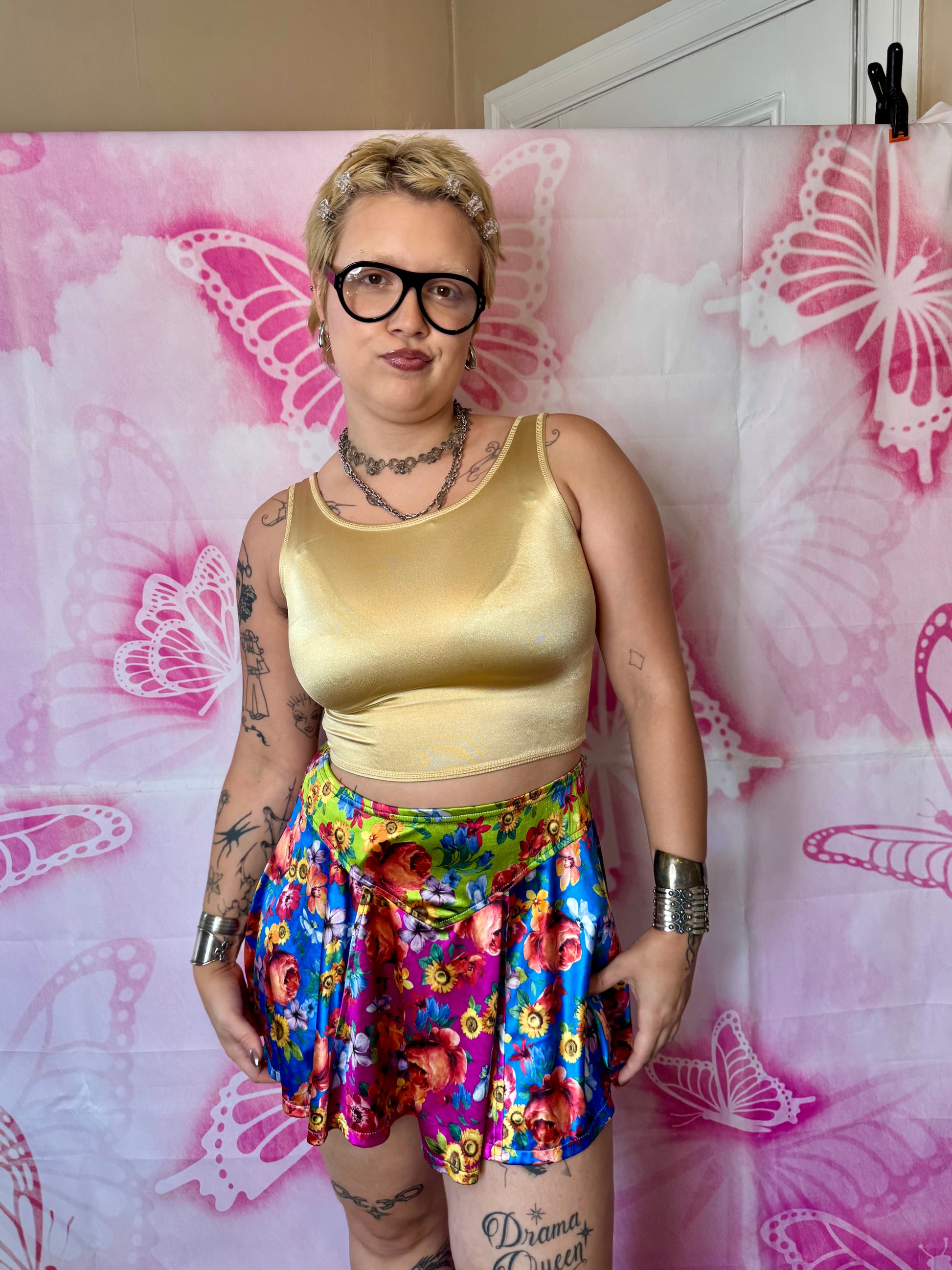 Measurements: 30" bust (with stretch), 15" shoulder to hem, 11" neckline to hem