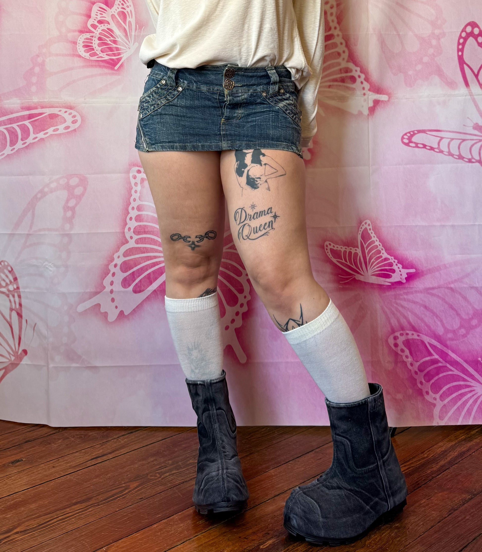 Measurements: 30" waist, 35" hips, 3" rise, 8.5" long