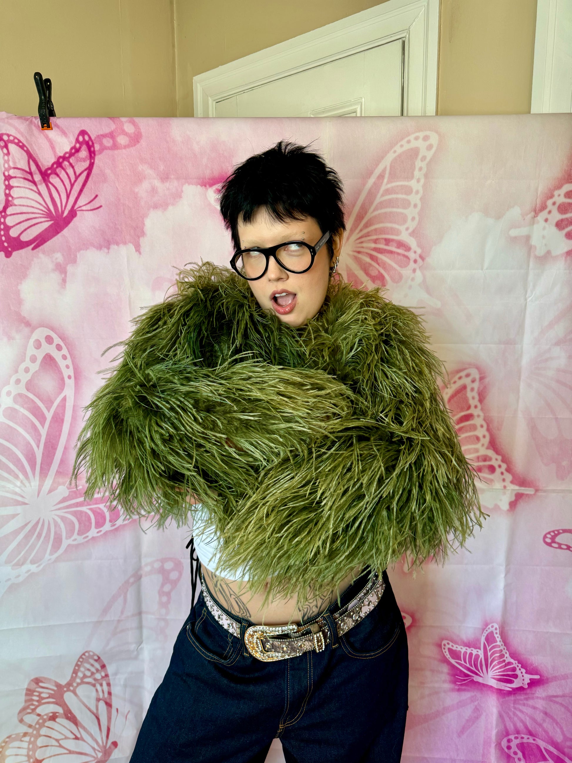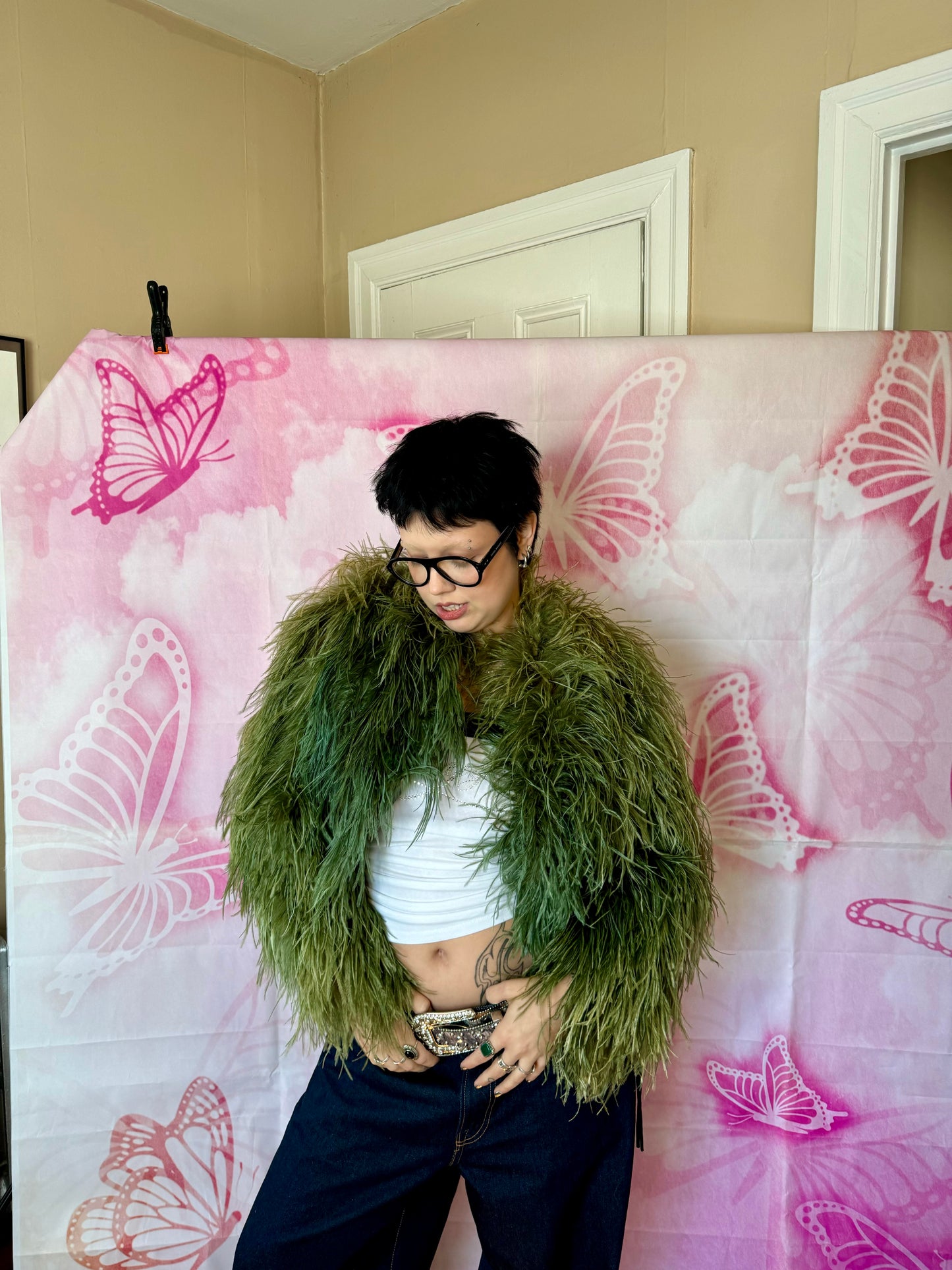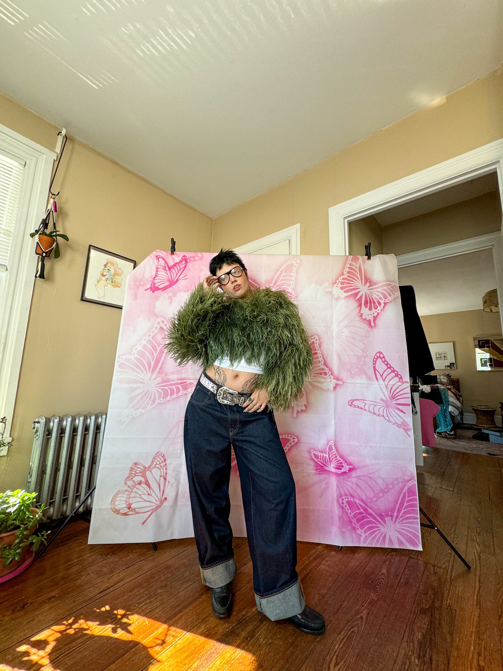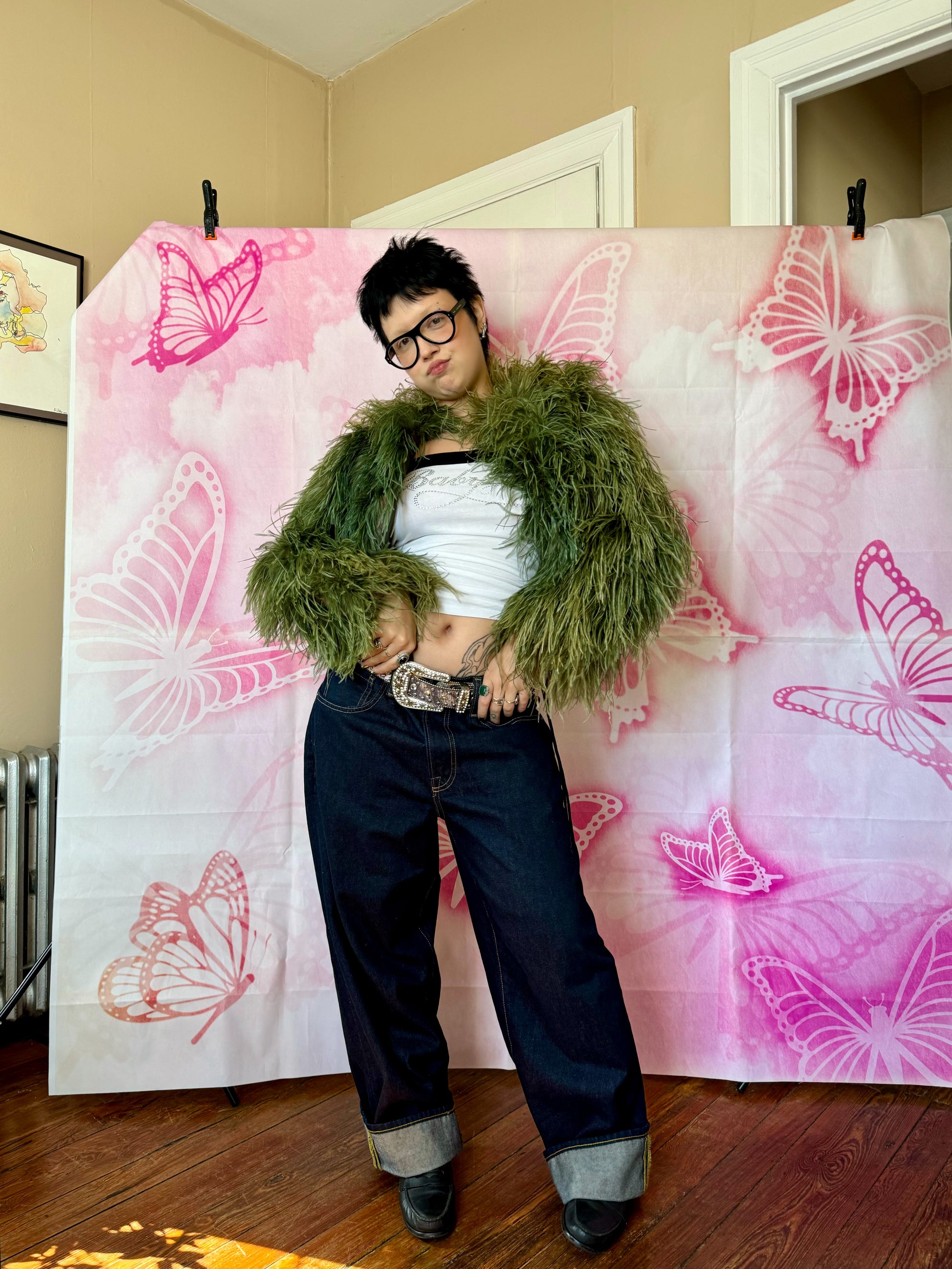 Measurements: 18" shoulder to shoulder, 18" pit to pit